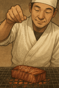 - サシの多いお肉 → 細かい塩を“焼く前”にまとわせる。脂の甘みと塩の旨みがタッグを組み、ラブソングのようにとろける。