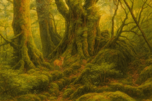 山に染み込み、苔むす森を通り、